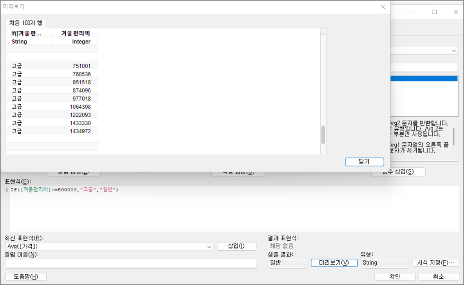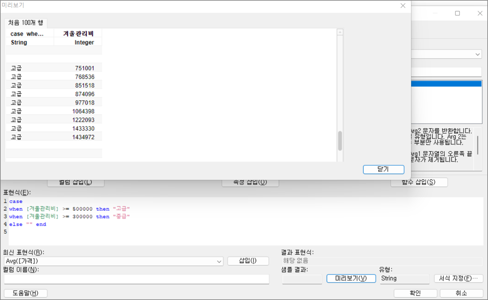 when [Column1] > 1 then "참1"