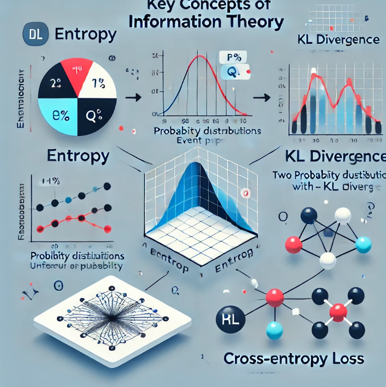 - 크로스 엔트로피: KL 다이버전스를 최소화하는 손실 함수로 딥러닝에서 사용됨.