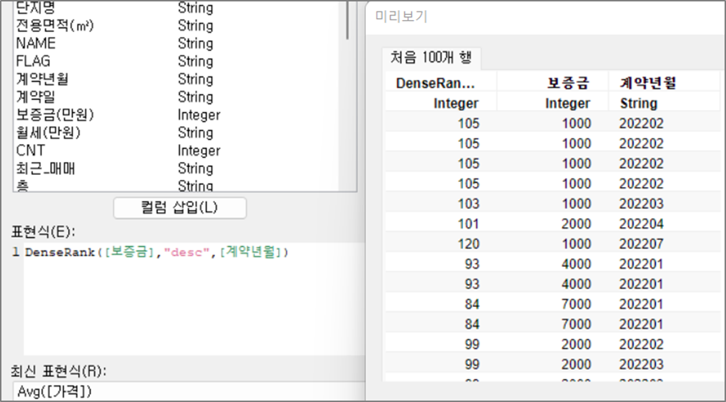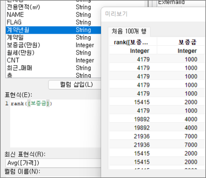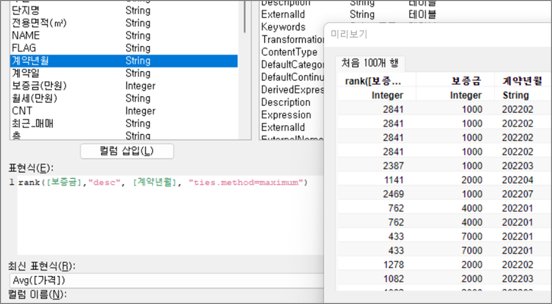 2) Rank([변수], "desc", [group변수], ties.method) 예시