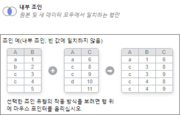 Null 값이 생성되는가(외부) 아니면 그 행을 지우는가(내부)로 이름이 붙여진다고 생각하시면 됩니다.