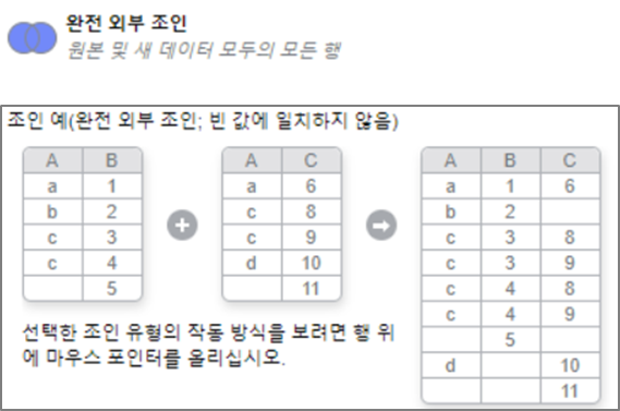 원하는 Join 유형 선택 후 확인