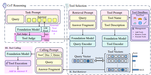 Chain-of-Tools는 이 두 접근법의 장점만을 결합해, LLM이 수천 개의 도구 중에서 적절한 것을 선택하고, 심지어 한 번도 학습하지 않은 도구까지 활용할 수 있게 했습니다.