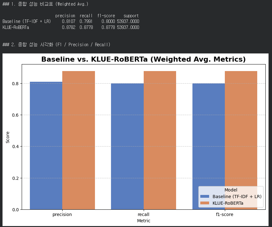- 최종 결과: best_news_classifier 폴더에 DL/LR 모델 및 전처리기 5종 세트 저장 성공.