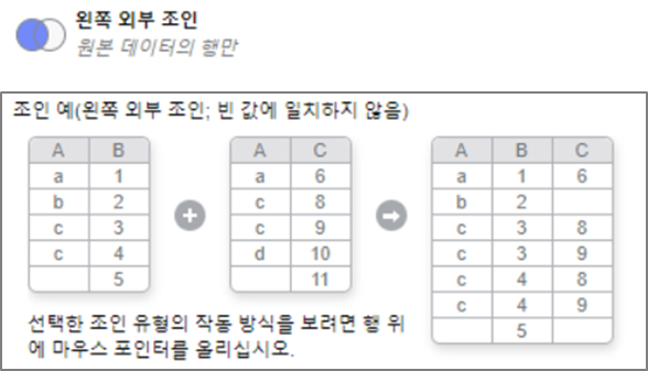 2) 내부/외부는 기준이 되는 Table은 보존이되고 연결되어 붙여지는 Table에 기준점이 되는 key값의 value가 없을 때