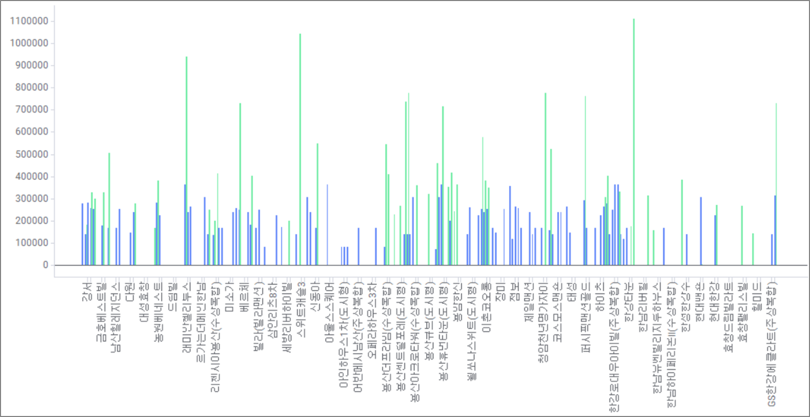 상단에는 Bar(바로 표시) 와 Line(선으로 표시) Chart를 선택 할 수 있는 버튼이 있으며