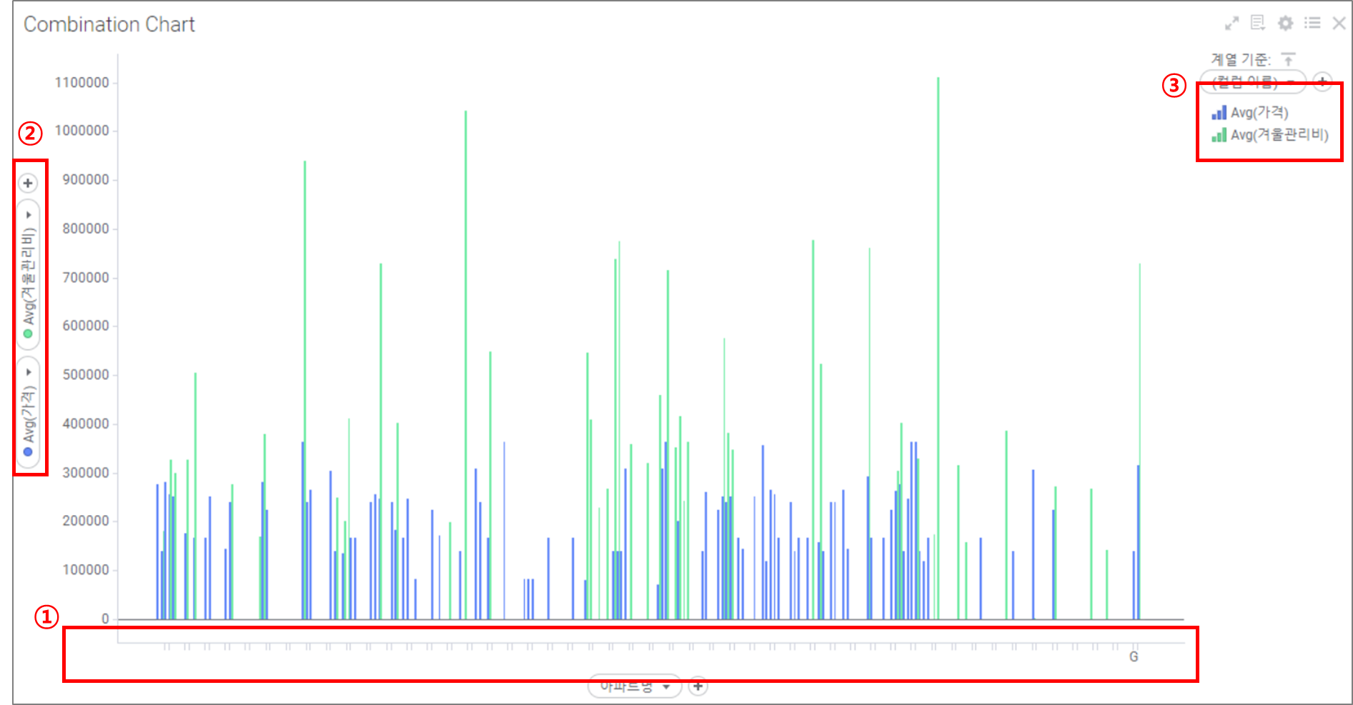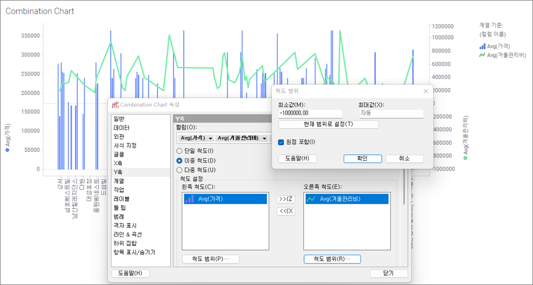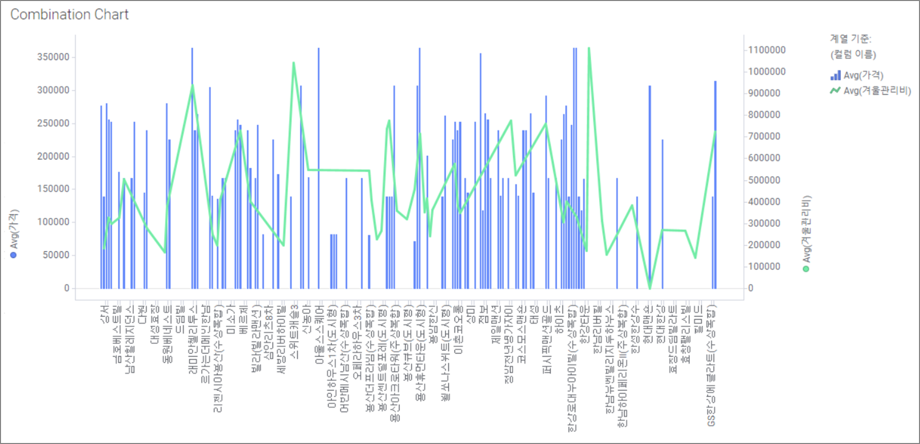 좌측은 겨울관리비를 Line으로 설정하였을 때의 Combination Chart 입니다.