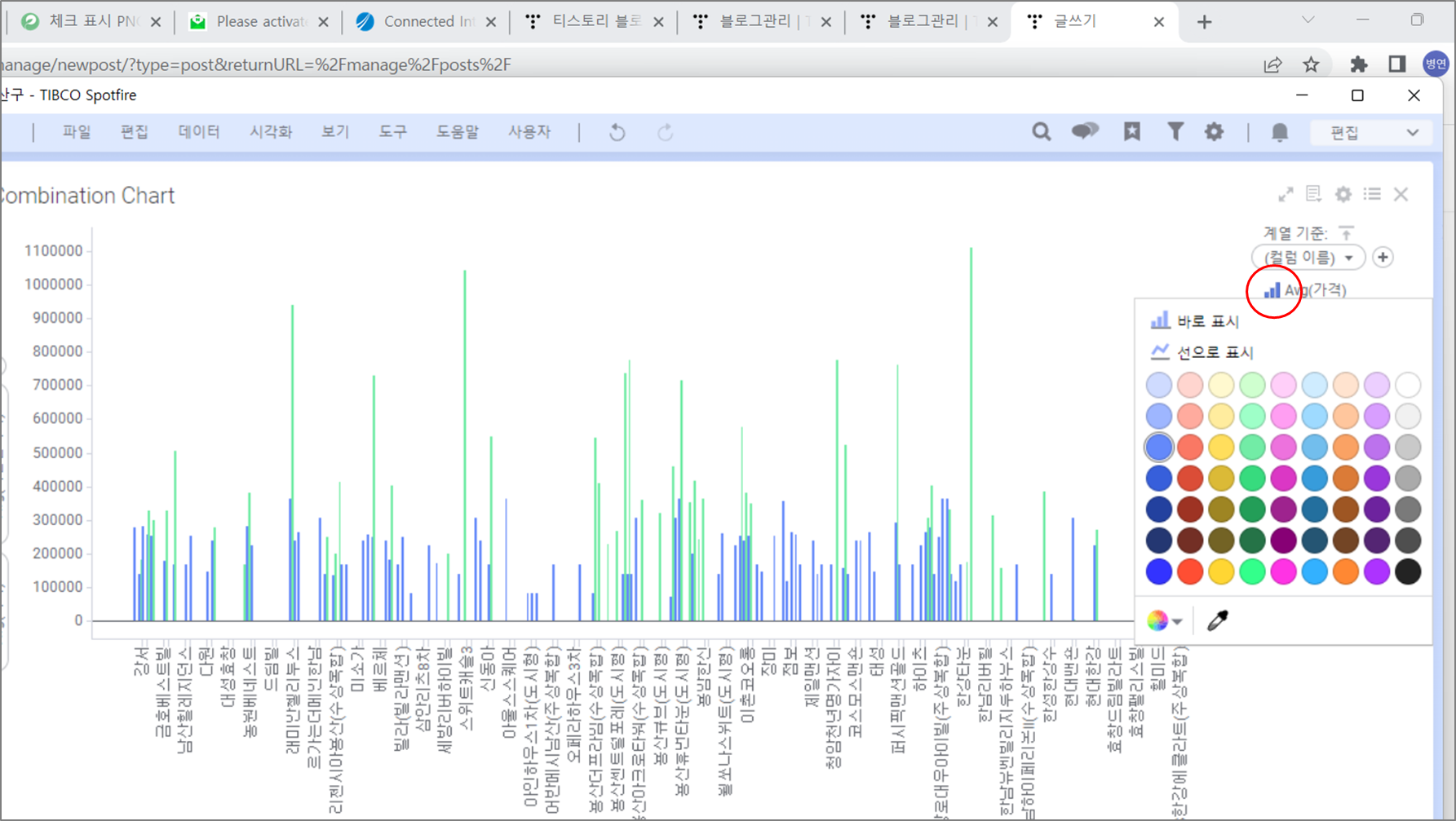 하단에는 해당 그래프의 색상을 선택할 수 있는 색상표가 있습니다.