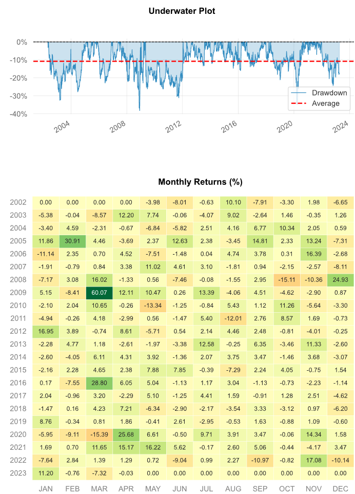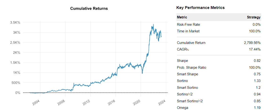 연 수익률은 17.44%, MDD는 -38.25% 수준을 보이고 있다