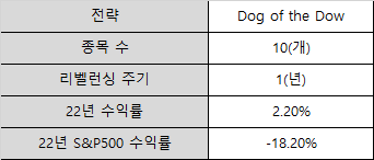 최근 2022년도 수익률 기준 S&P500을 오버퍼폼한 전략이다