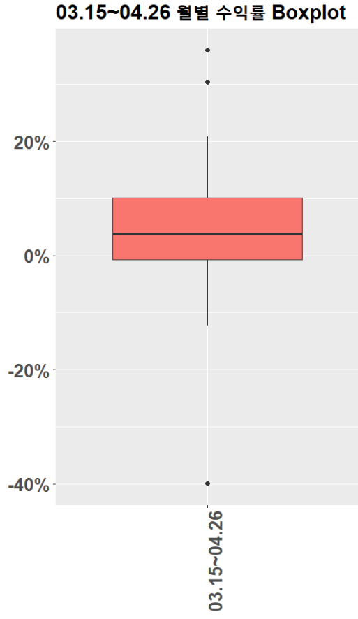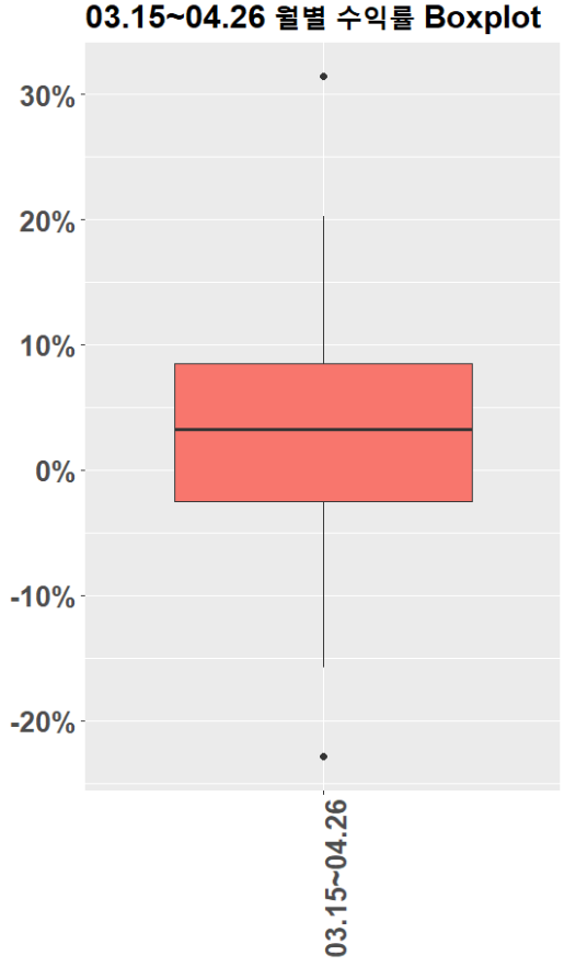 1월, 3월, 4월 의 수익률의 분포가 (+)로 약간 치우쳐 있는 것을 볼 수 있다