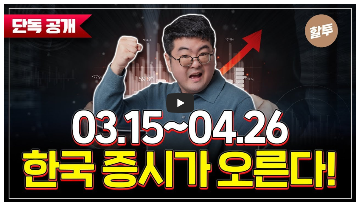 지난달 강환국 유튜버님께서 올리신 '03.15~04.26 한국 증시가 오른다' 라는 영상을 보면서 실제로 해당 기간에 어떠한 결과가 나왔는지 확인을 해보고자 한다