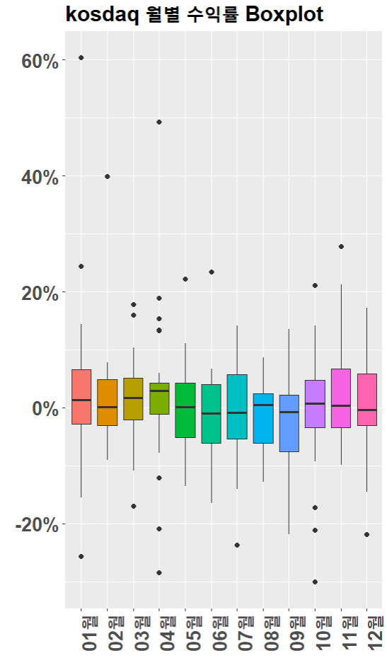 다음으로, Kosdaq 월별 수익률을 살펴보자