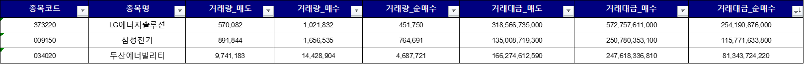 Top3 종목은 LG에너지솔루션, 삼성전기, 두산에너빌리티 순 입니다