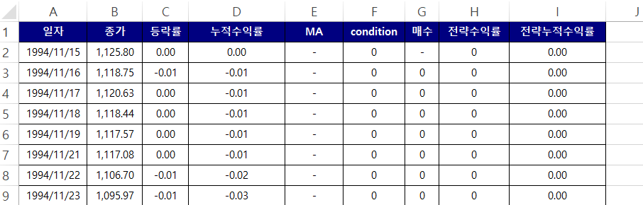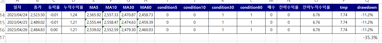 이를 실제로 반영하기 위해 매수 Column은 전날의 condition을 가져오겠습니다