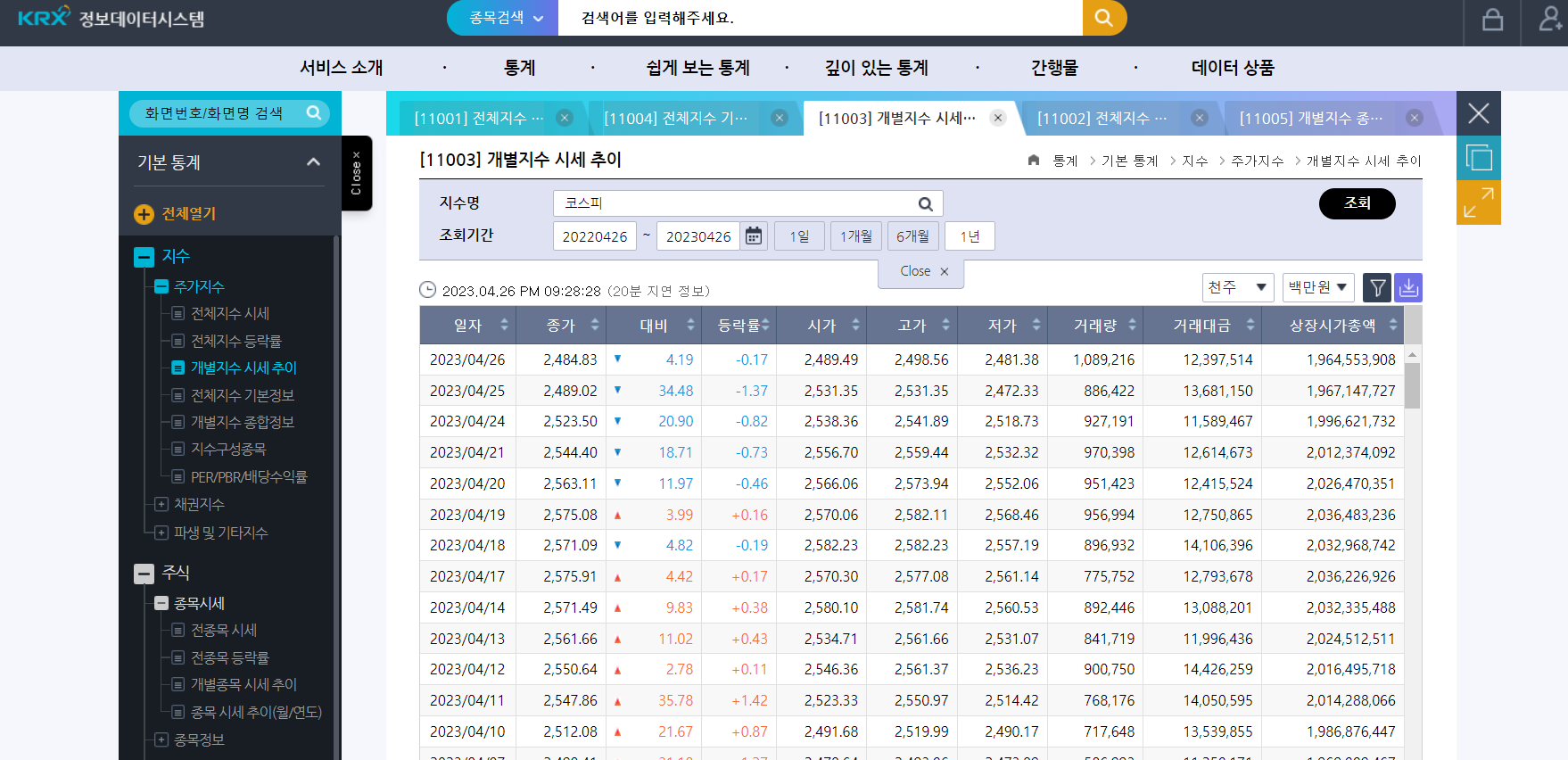 KRX 정보데이터 시스템에 기본적인 정보는 이전 게시물에서 다뤘기에 바로 한번 데이터를 찾으러가보겠습니다