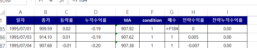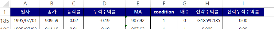 마지막으로 전략누적수익률 Column을 만들겠습니다